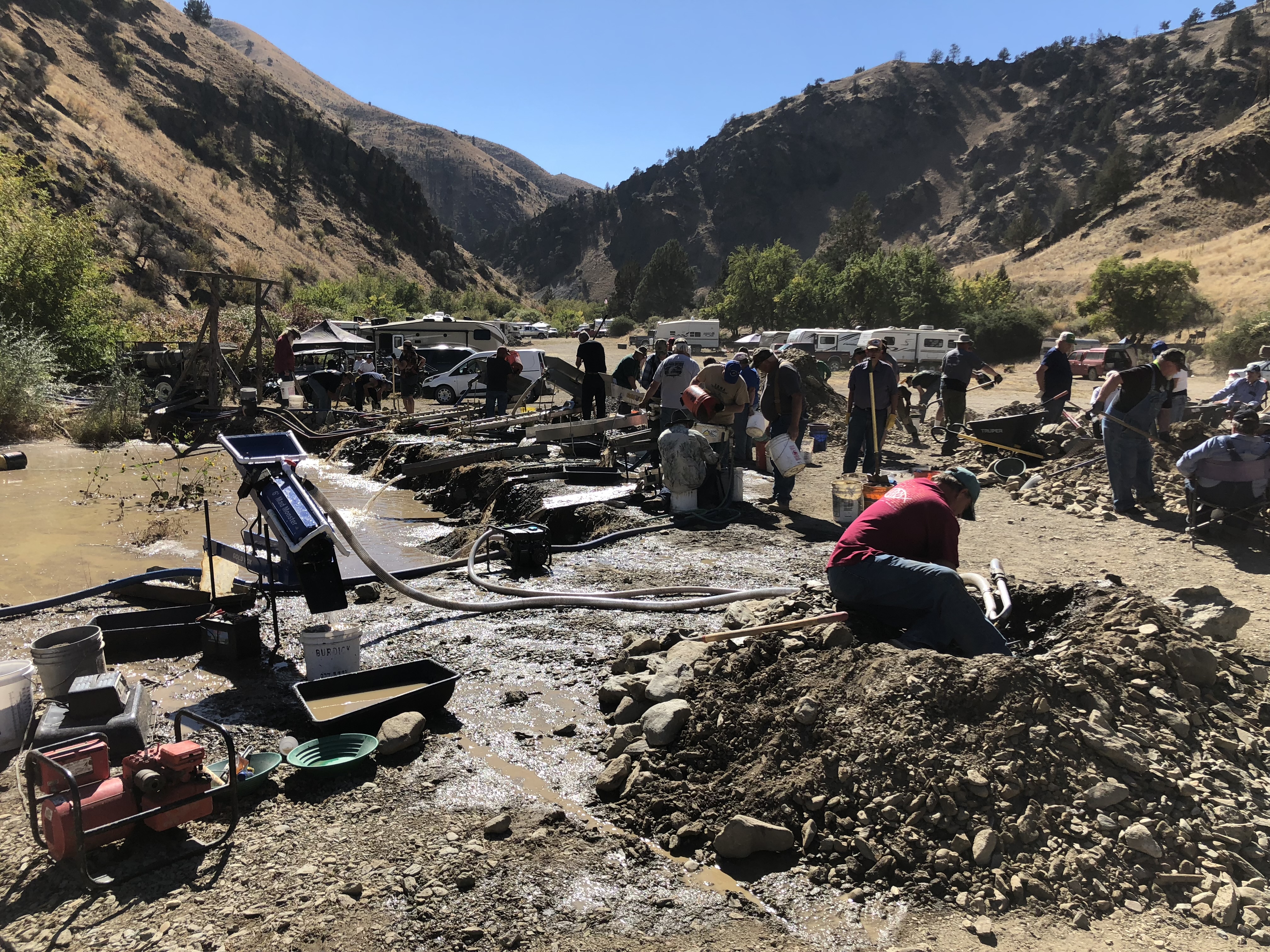Participants started classifying down material to ½" and bringing buckets of ready to process dirt to all the equipment. Soon we should be capturing the GOLD!